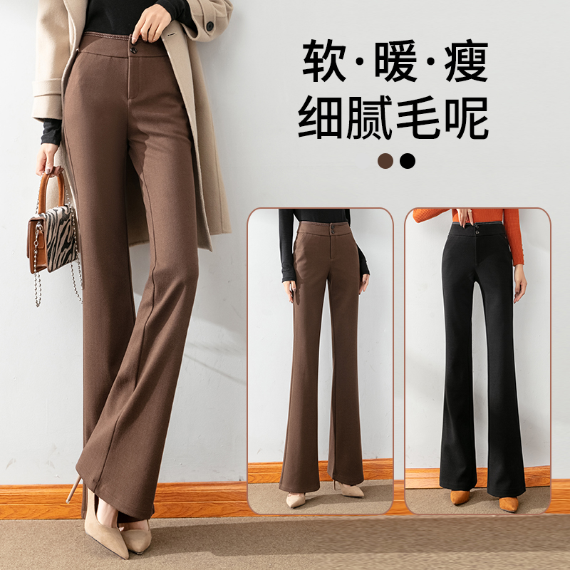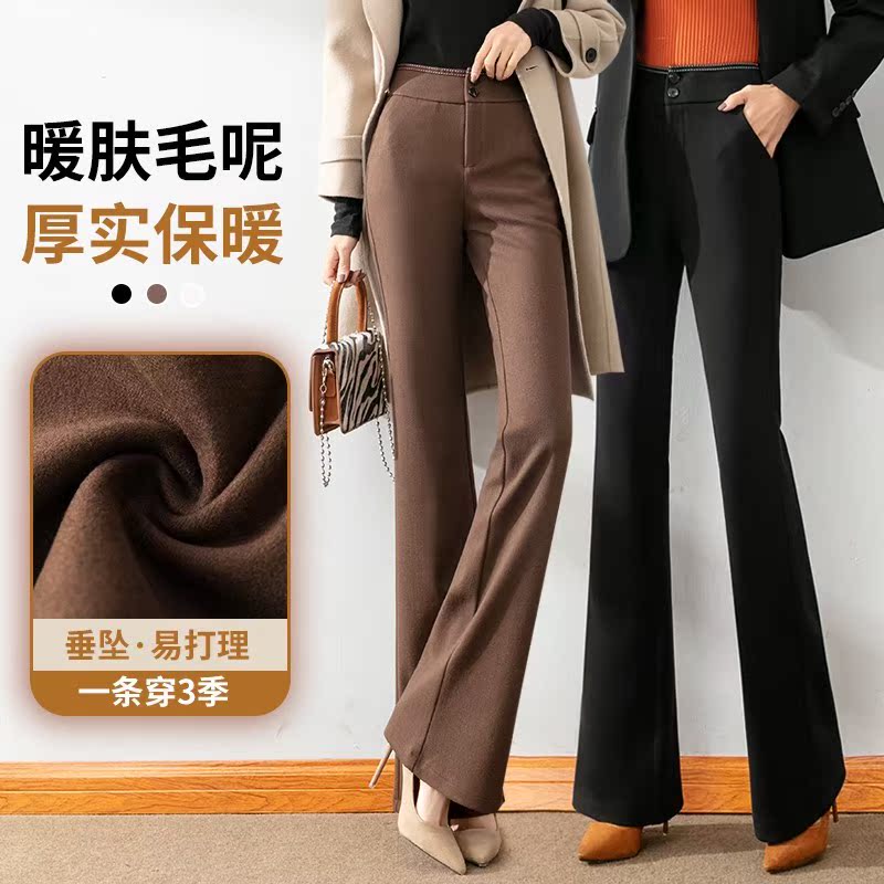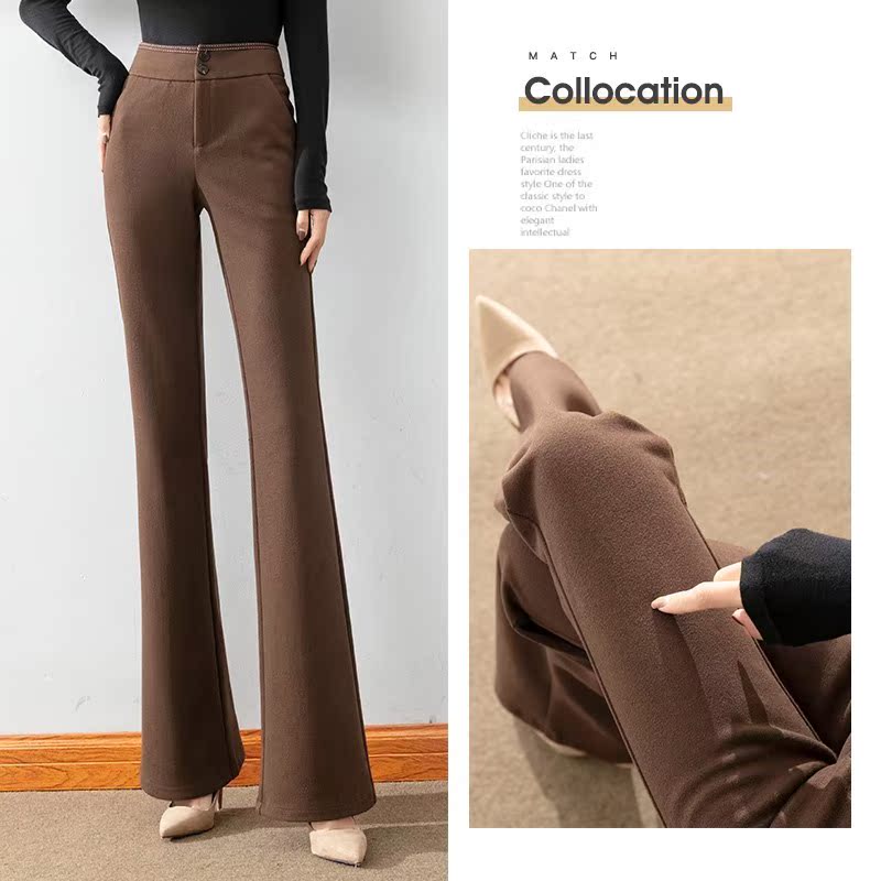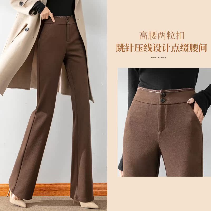 Wool Thickened Professional Suit Pants Women's Autumn and Winter Fashion High Waist Slender Casual Pants Dropping Feel Straight Slim Pants