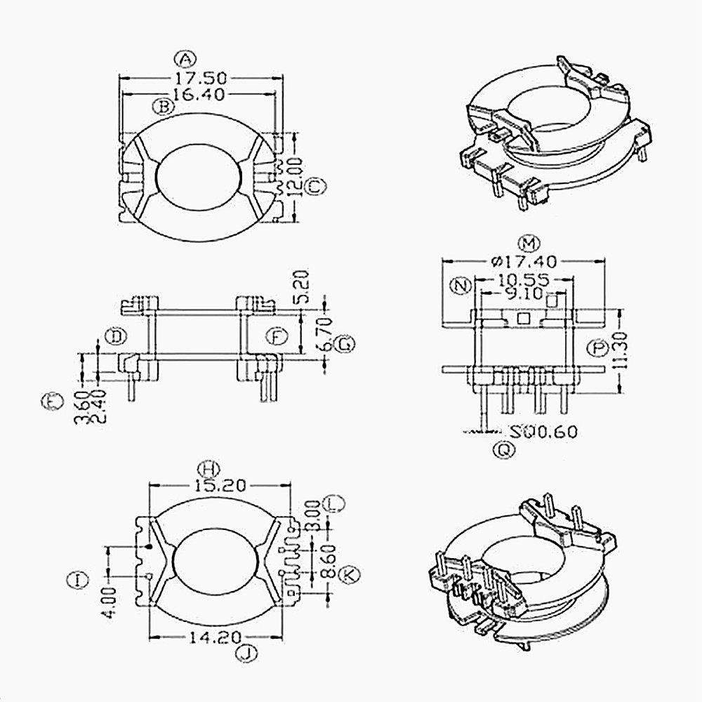 PQ2014 skeleton power transformer magnetic core skeleton vertical 4 2-pin slot width 5 2mm skeleton core 20 sets