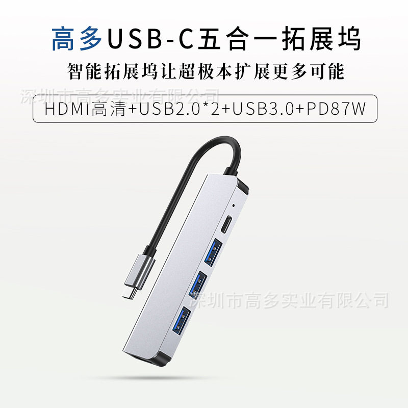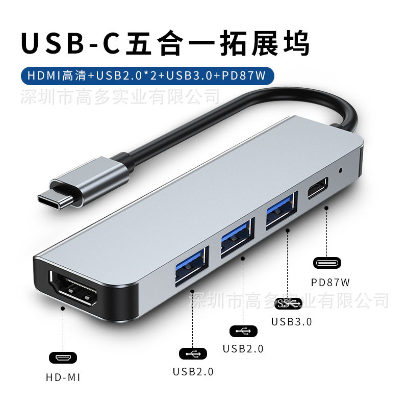 Cross-border hub usb expansion dock with the same screen for Apple Huawei notebook five-in-one docking station