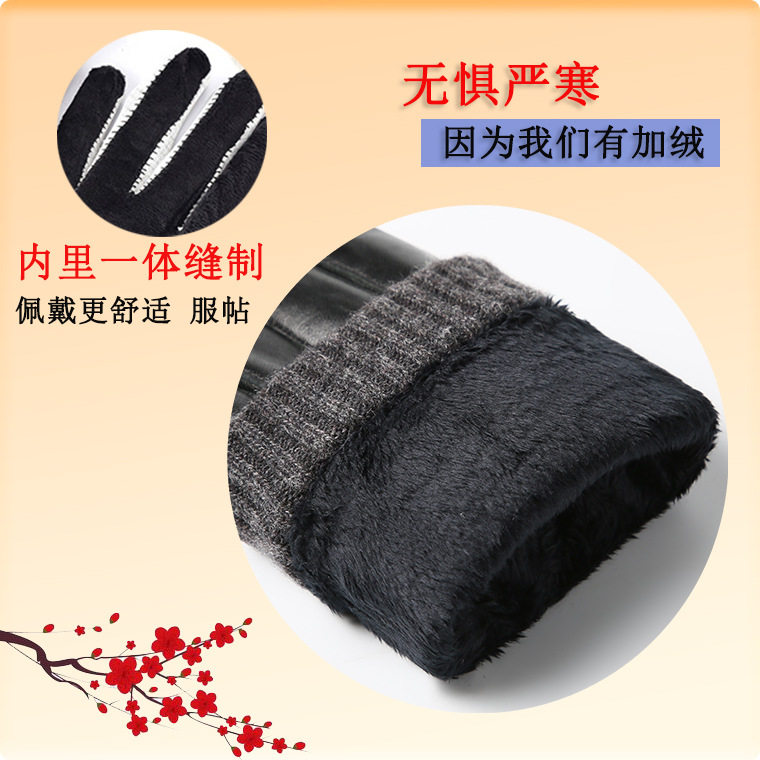Autumn and winter leather gloves men's plus velvet warm windproof anti-skid cycling driving motorcycle cold-proof touch screen gloves