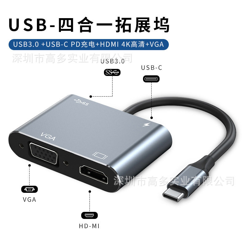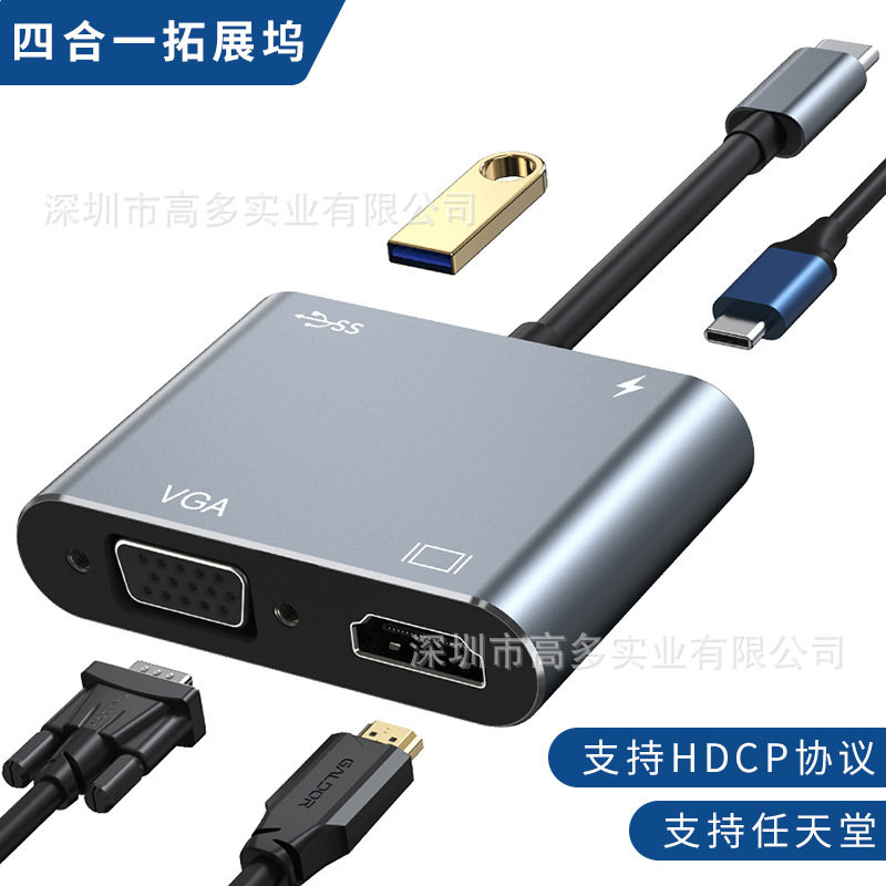 Cross-border USB-c converter four-in-one extension dock applies Huawei Apple notebook expands to the screen