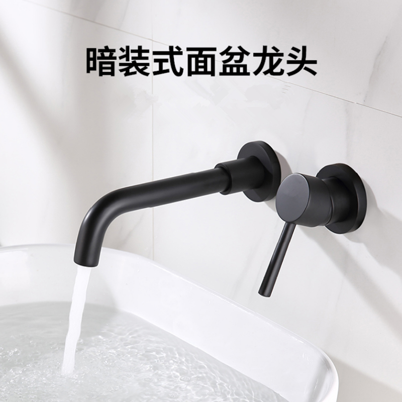 Full copper-in-wall-type tap Concealed Face Basin Tap Black Embedded with basin tap hot and cold single handle