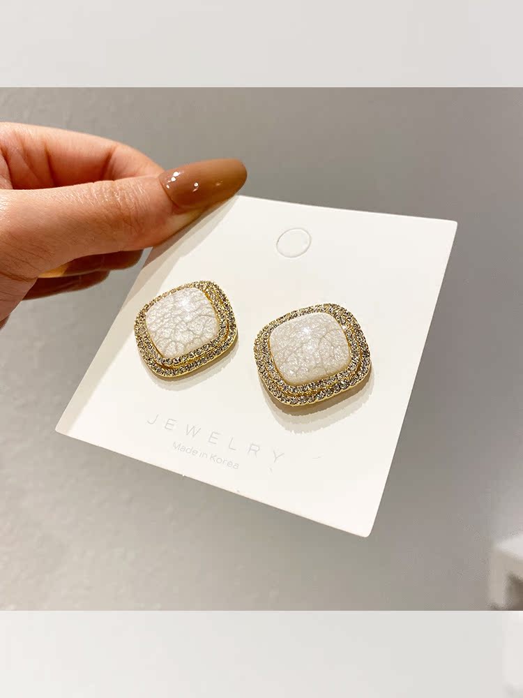 Geometric square earrings full of diamonds 2021 new trendy high-end earrings Korean Dongdaemun texture milkshake earrings