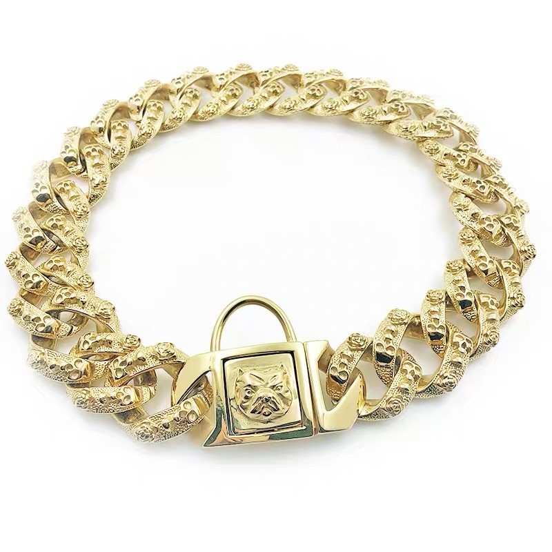 Dog Bully Collar Collar Stainless Steel French Fighting Gold Necklace Doberman Pinscher Chain Medium and Large Dog Bulldog Titanium Steel