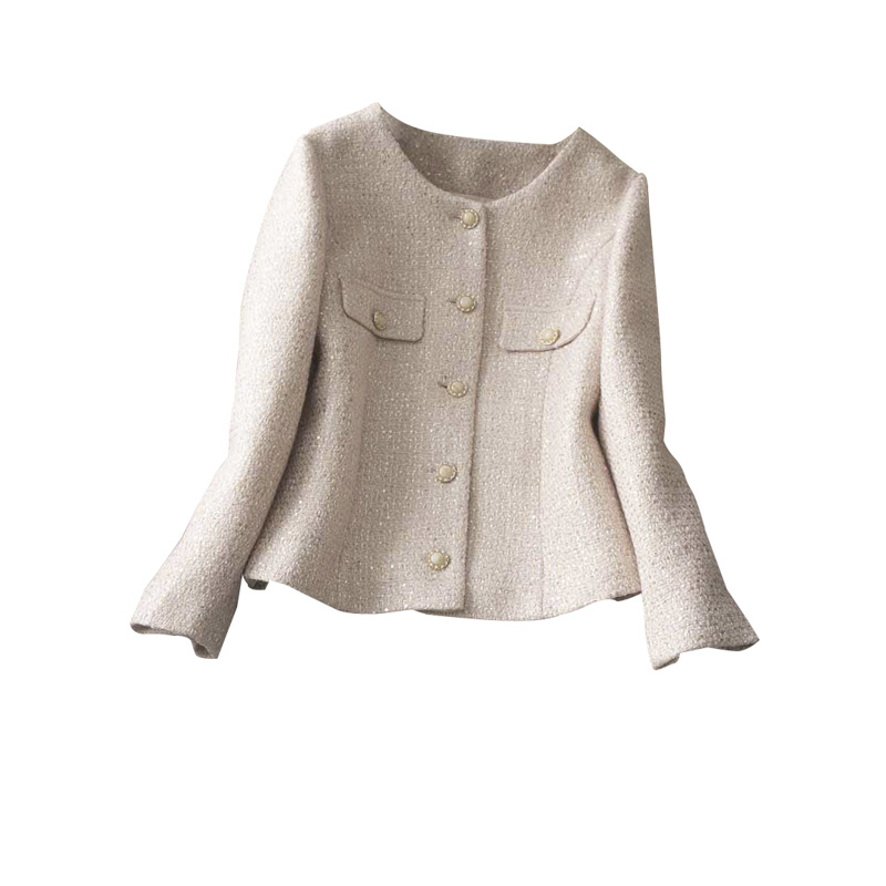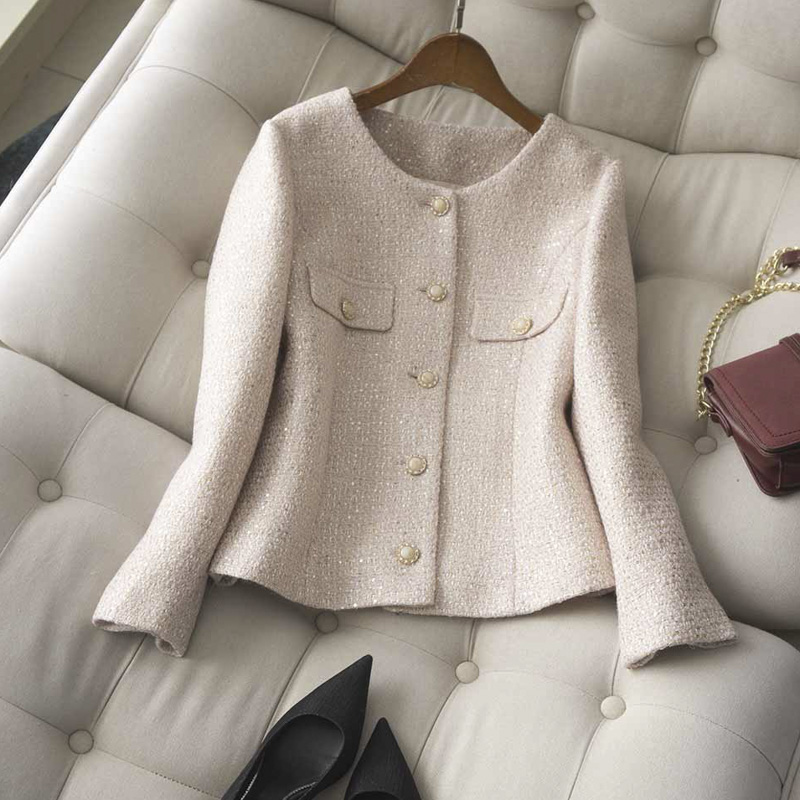 Velvet Jasmine Elegant Lady Temperament Sequined Tweed Scented Ladies Short Coat Fragrant Granny Wool Coat
