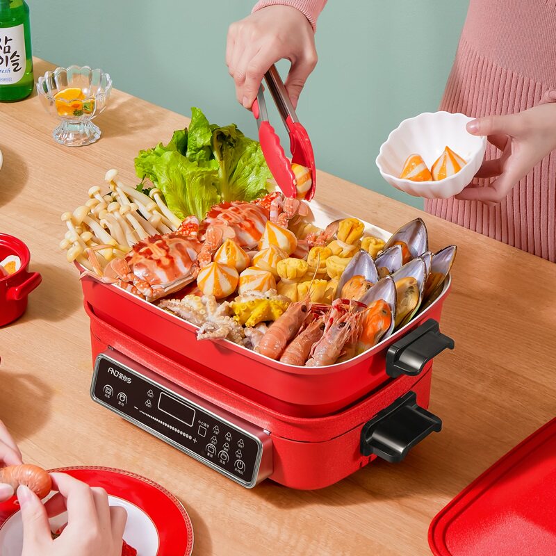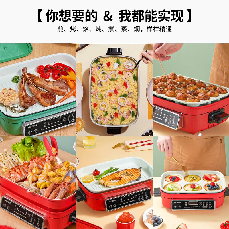 Aiyouduo multi-functional cooking pot modern net red electric grilling pot barbecue oven integrated household cooking, frying and frying hot pot