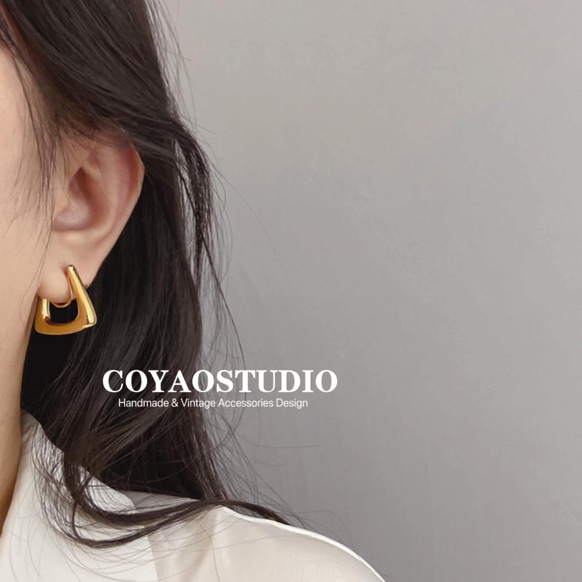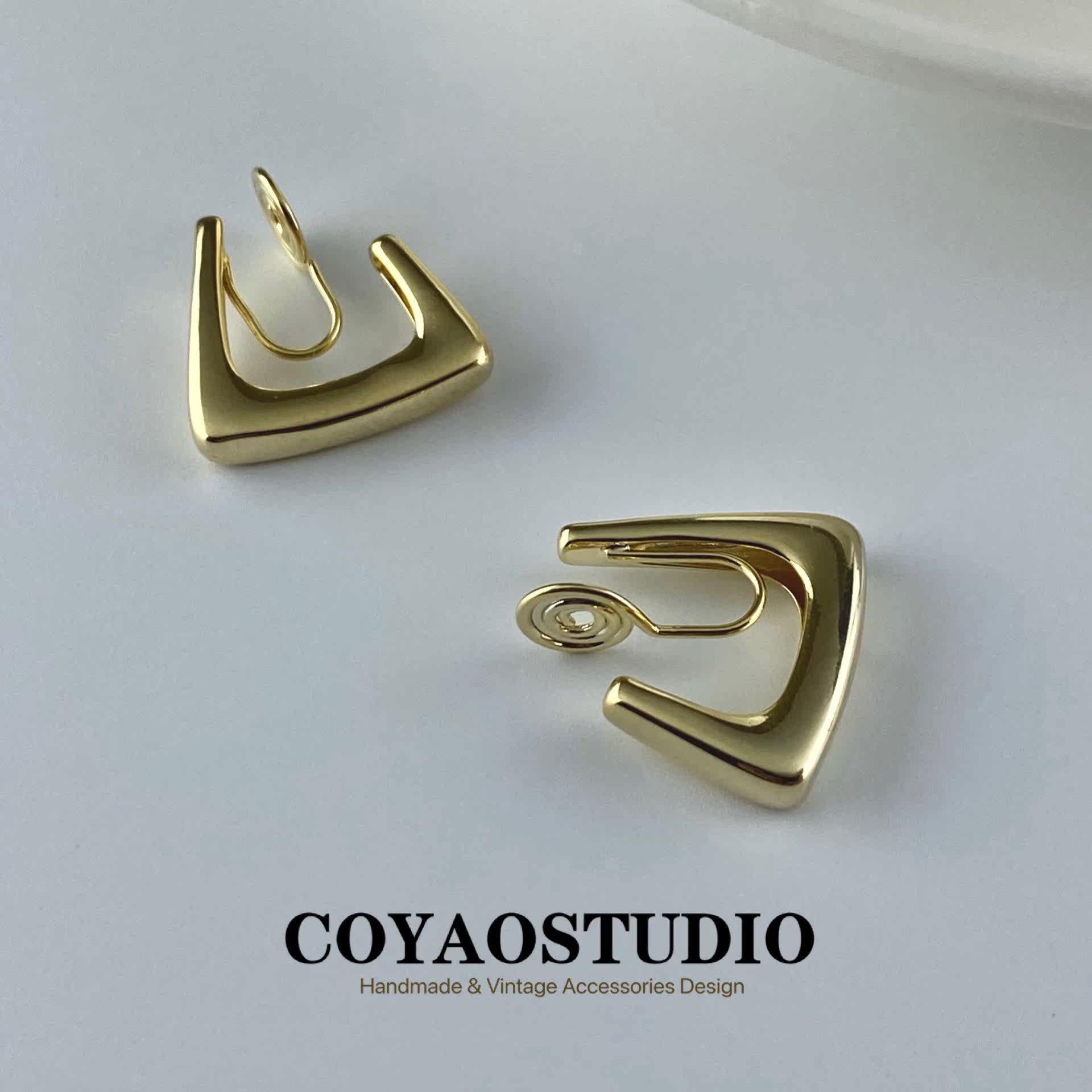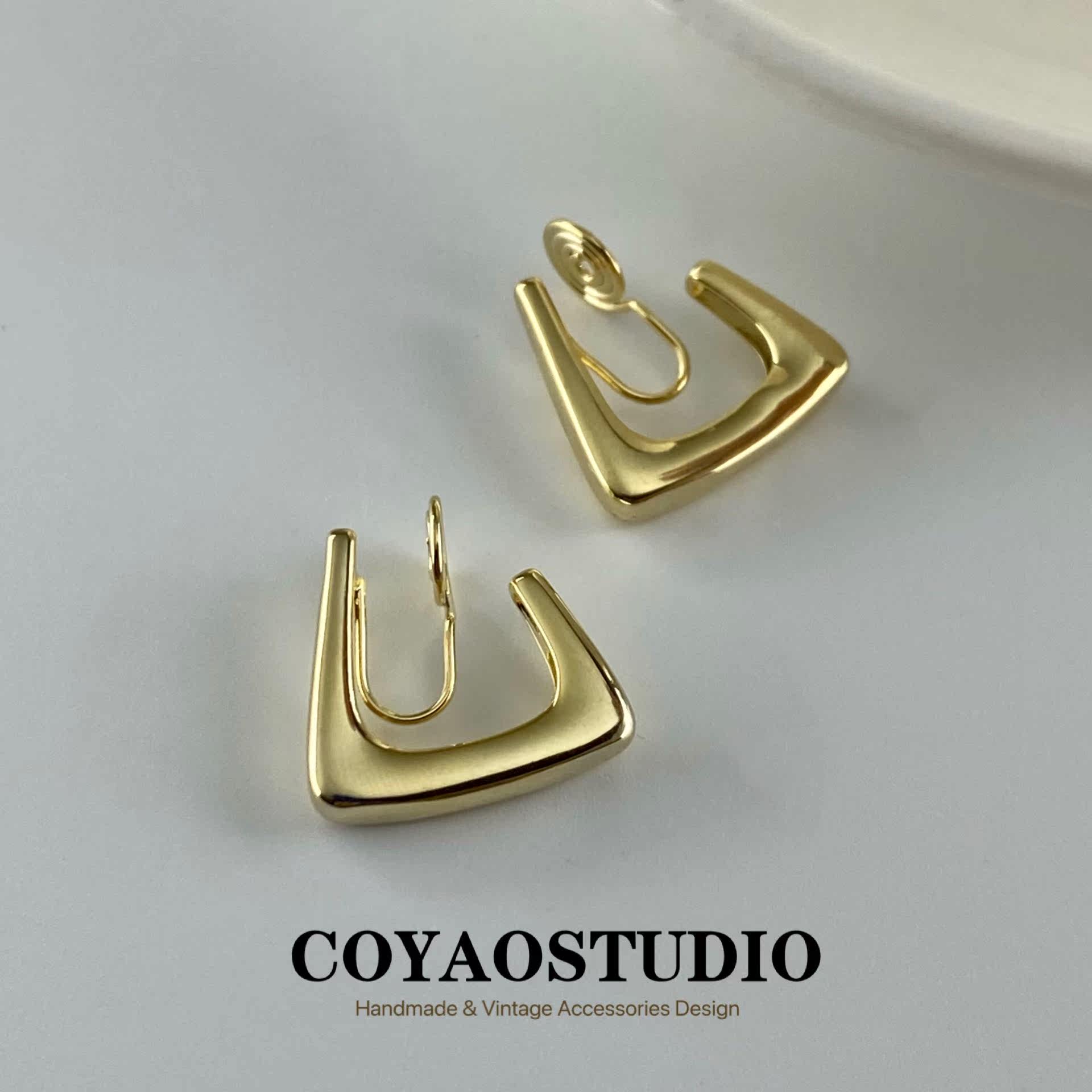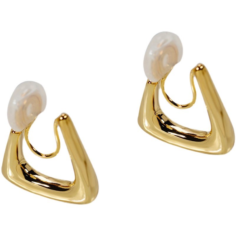 Gamposium gold plated geometric triangle earrings female earbuds with high-level sensibility fashion simple French mosquito incense plate ear clamp