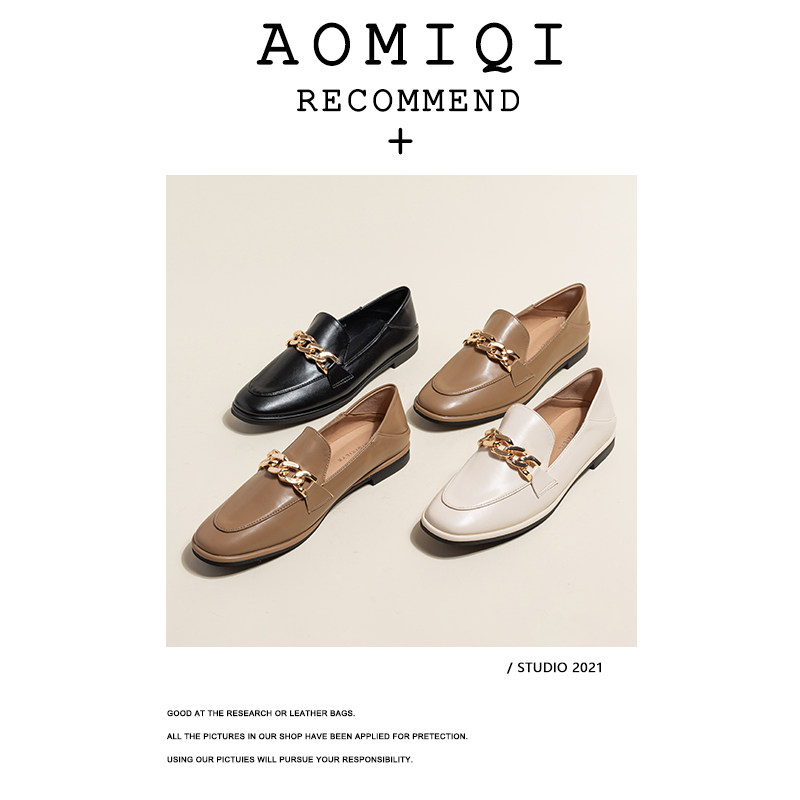 Omiqi flat leather shoes women 2022 new spring and autumn beanie shoes British style one foot pedal single shoe Lefour shoes