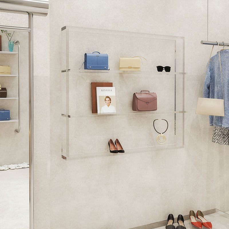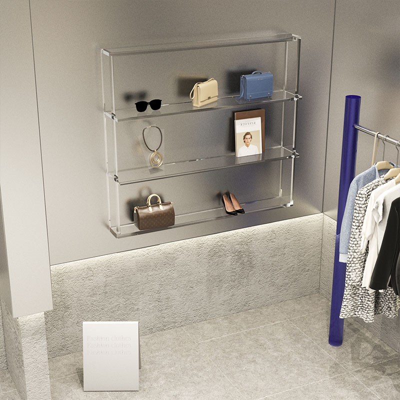 Clothing Store Acrylic Display Rack Upper Wall Shelves Men's And Women's Online Red Dress Store Shelves New Custom Display Props