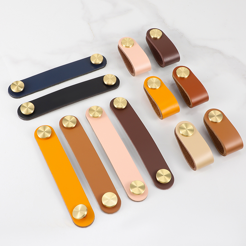 Anti-crash real cow leather handle light and luxurious and family cabinet door wardrobe drawers leather cortex overall cupboard cabinet children's room handle