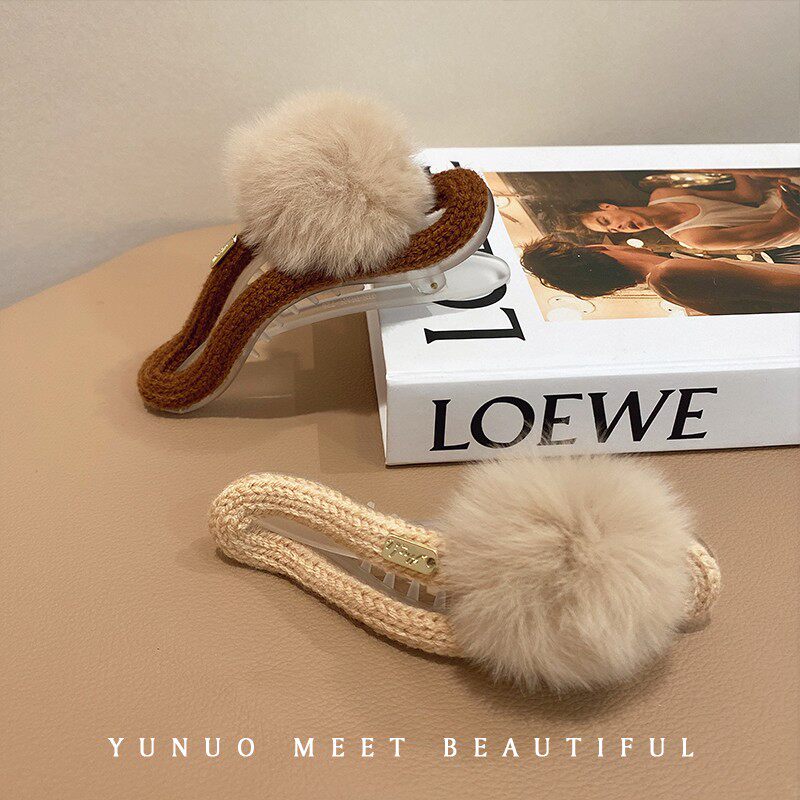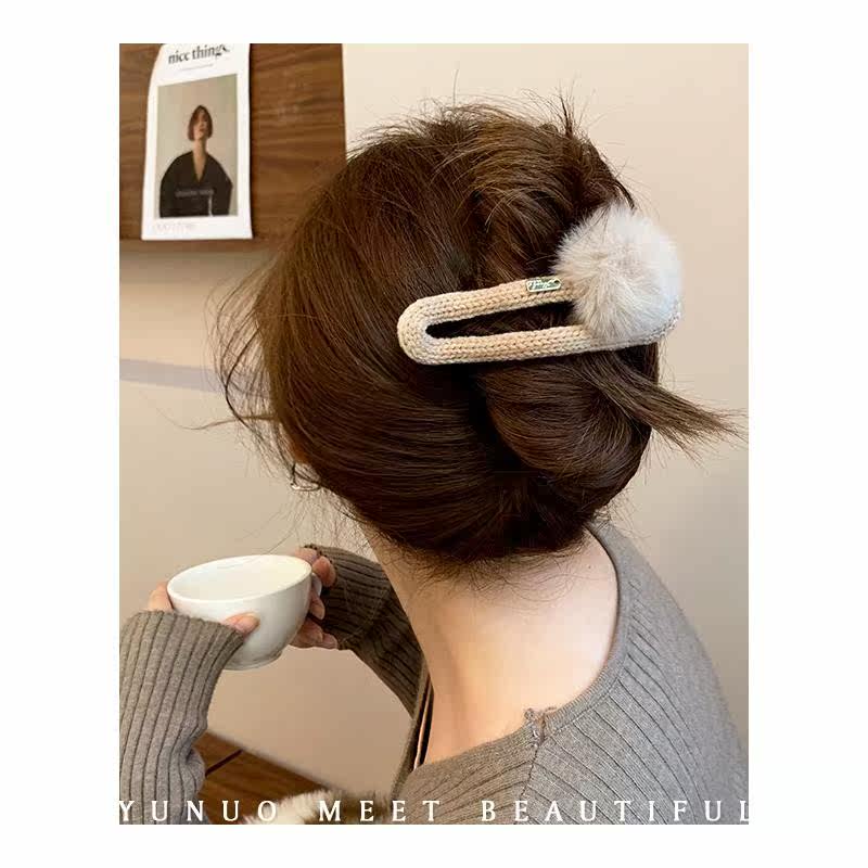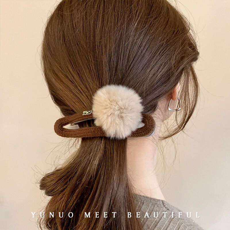 Autumn and winter plush ball hairpin elegant clip on the back of the head sweet hairpin shark clip headdress large duckbill clip