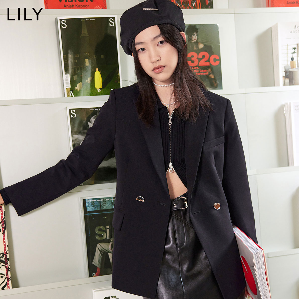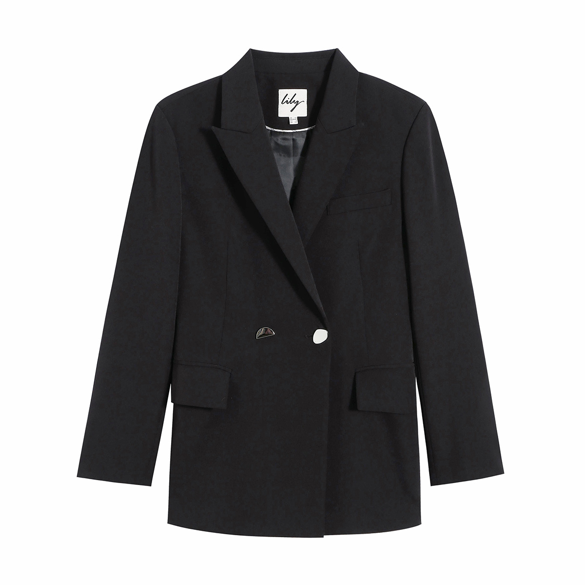 LILY2022 Spring New Women's Dress Design Sense Metal Buckle Black THIN LOOSE Commuter Suit Jacket