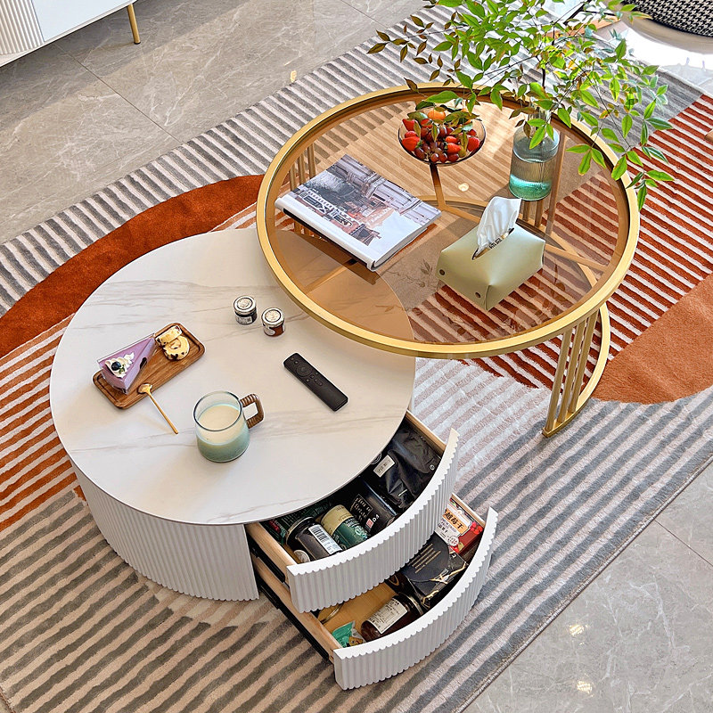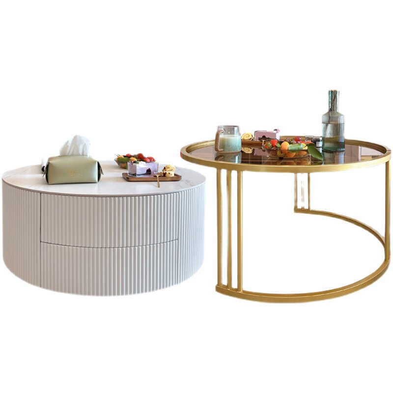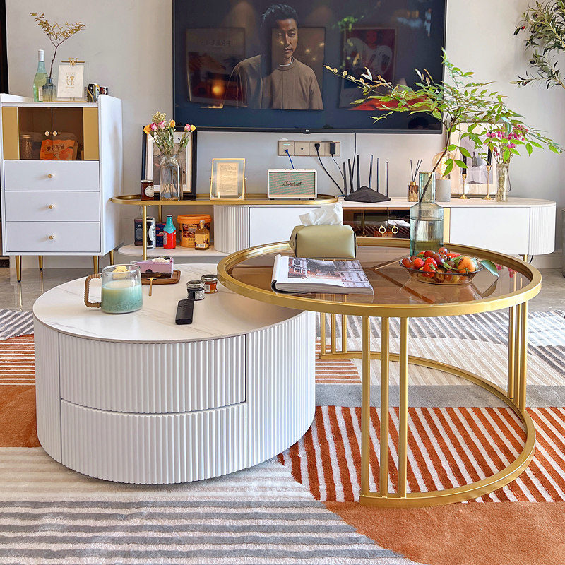 Nordic light luxury rock plate coffee table simple modern living room brown tempered glass small apartment round TV cabinet combination