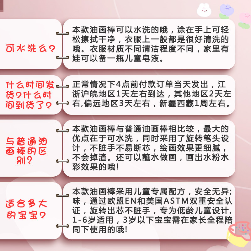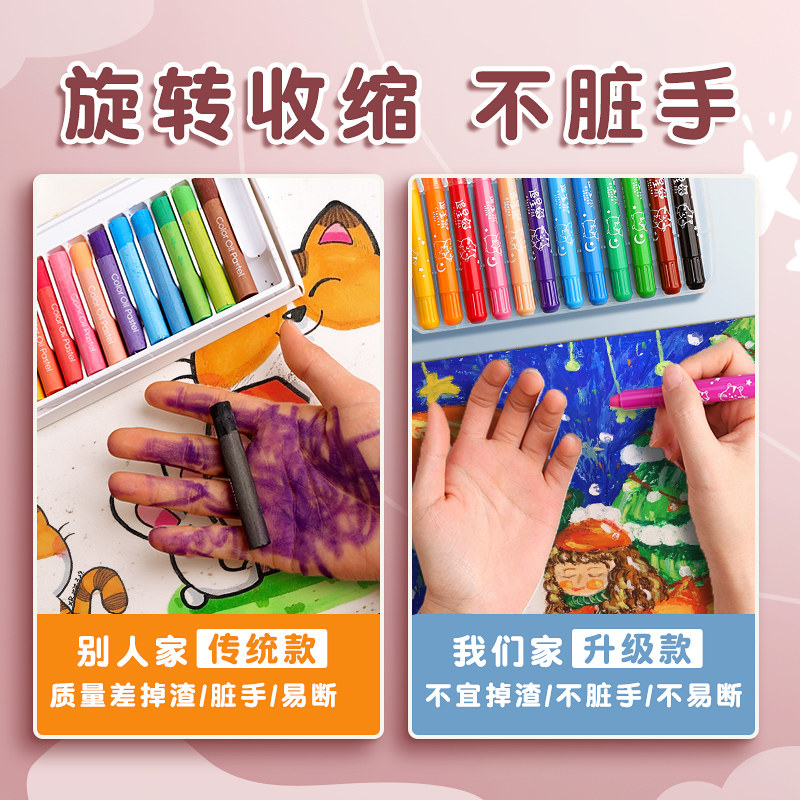 Deli 48 color children's oil painting stick safe non-toxic non-dirty hand crayon kindergarten special water-soluble colorful stick washable baby paint brush color pen rotation wax pen non-stick hand does not stick to the hand