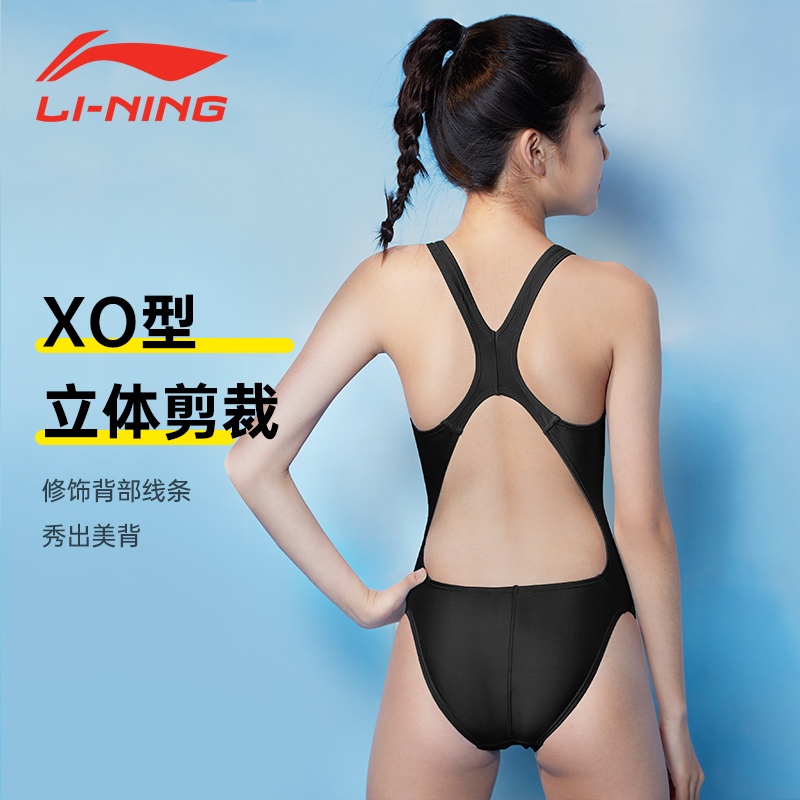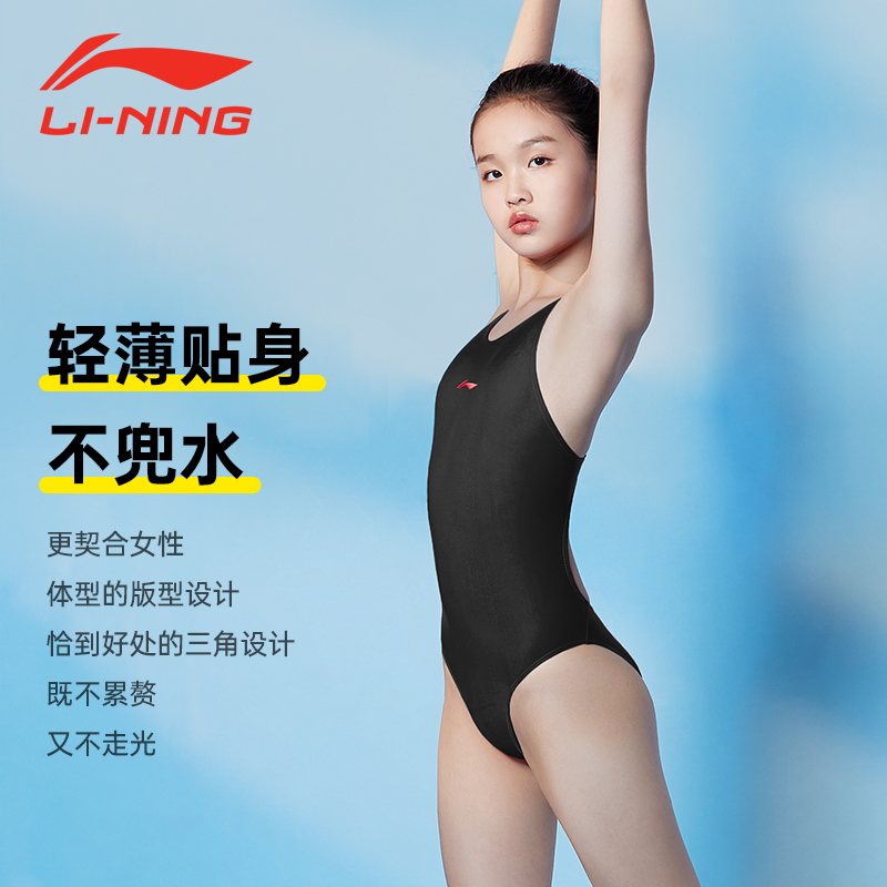 Li Ning Children's swimsuit Female CUHK Tong Student Competition Training Anti-Chlorospeed Dry Conjoined Triangle Professional Swimming Closet
