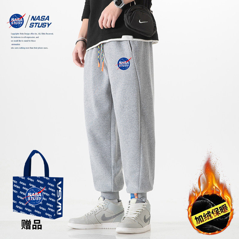 New cropped trousers men's fleece tide brand spring and autumn fashion all-match casual trousers winter trend sports trousers