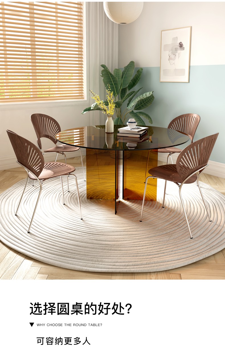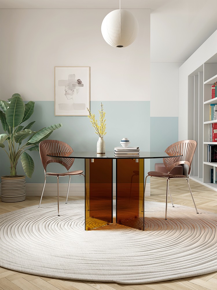 Tempered glass large round dining table for 10 people home light luxury designer net red Italian art transparent dining table and chairs