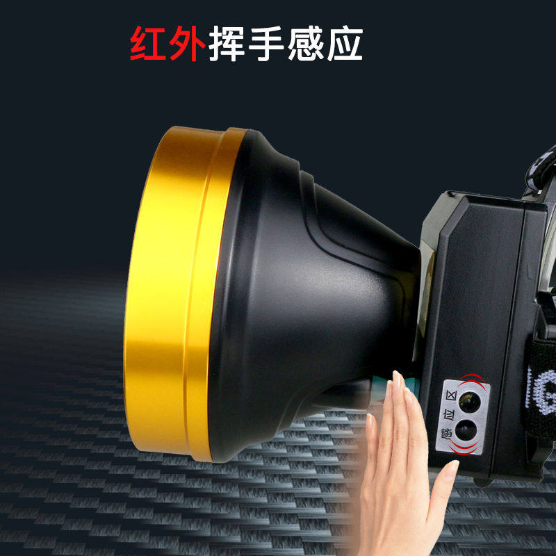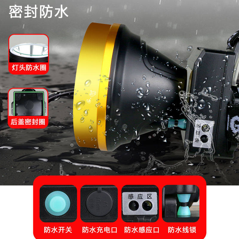 Headlight can be replaced 18650 battery-free dual lithium battery waterproof and replaceable USB rushing sea strong light super bright yellow light induction