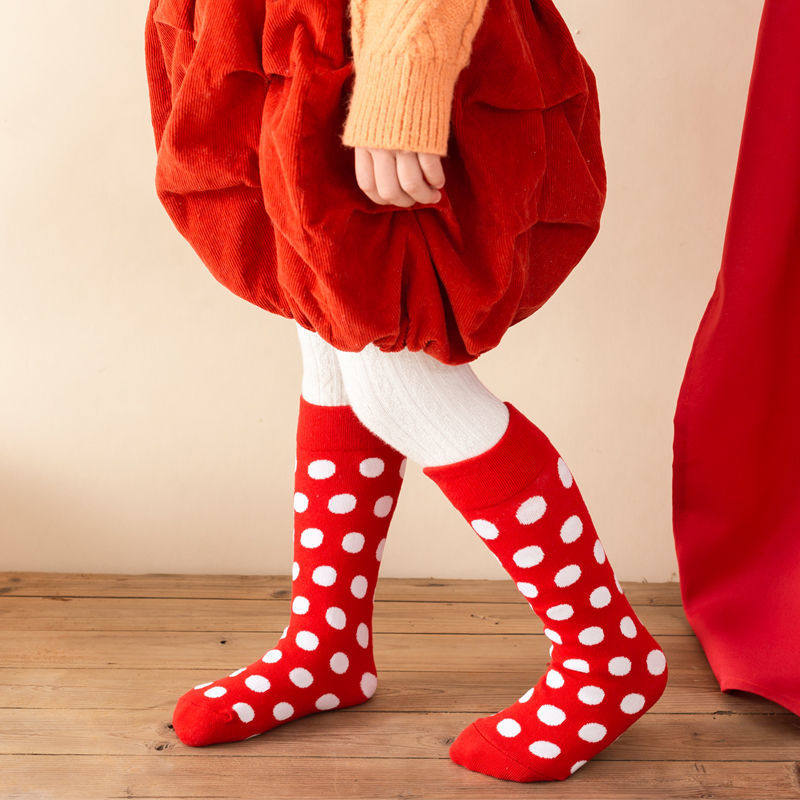 New Year's socks red New Year's spring and autumn long tube socks bow girl baby cute super cute 0-6 years old