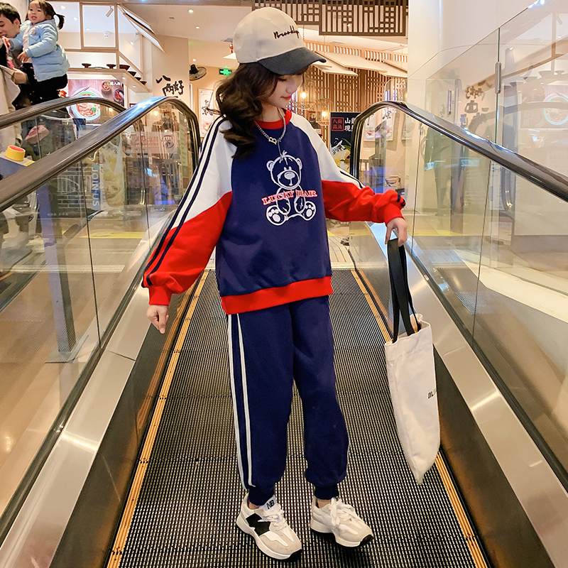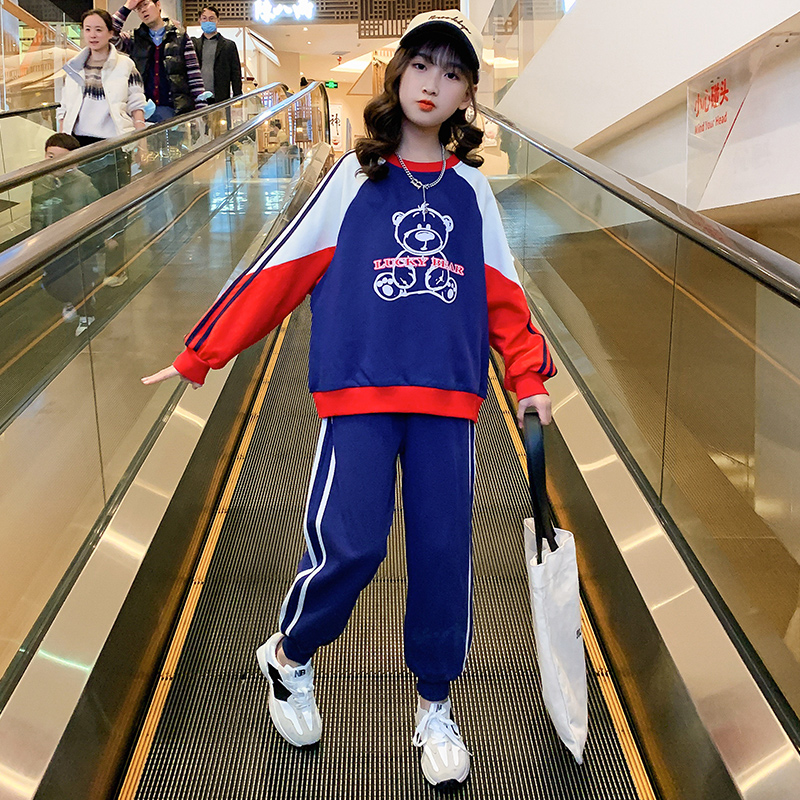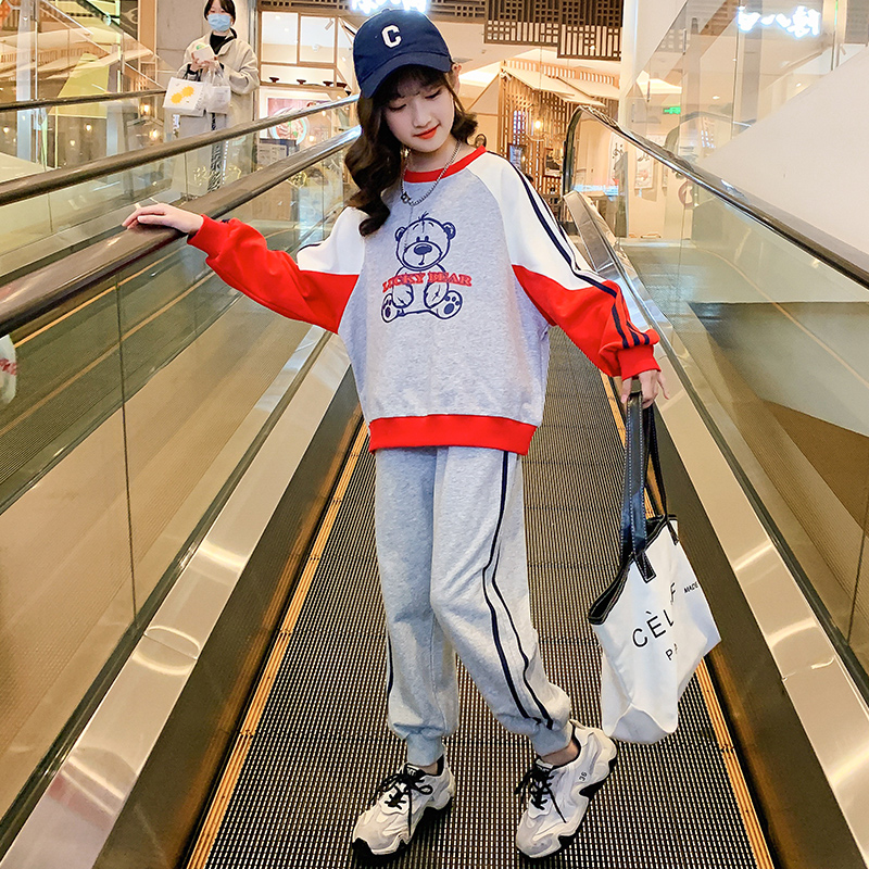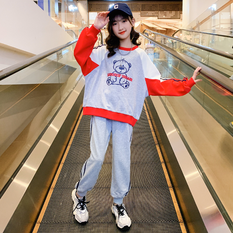 Girls net red suit spring 2021 new Korean version of the Western style spring and autumn children's girls sweatpants thick cotton T two-piece set