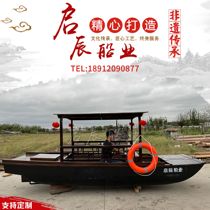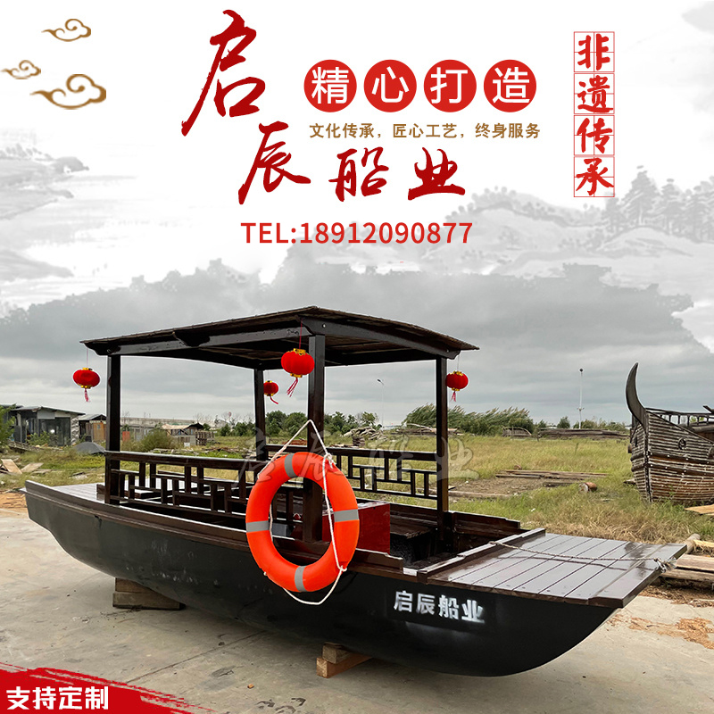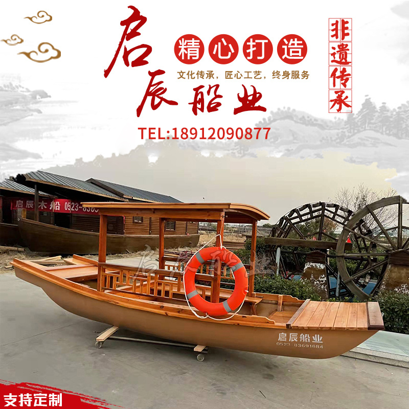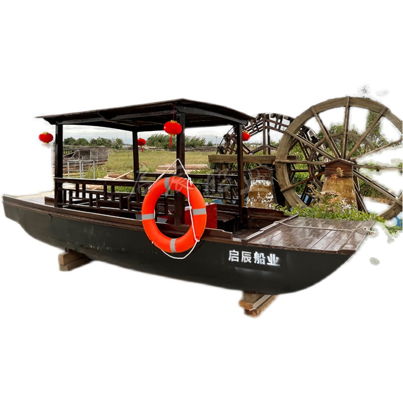 Small wooden boat fishing boat Solid Wood Water Park Electric Painting boat Tourist hands Rowing Boat Modelled on Antique Sightseeing Boat