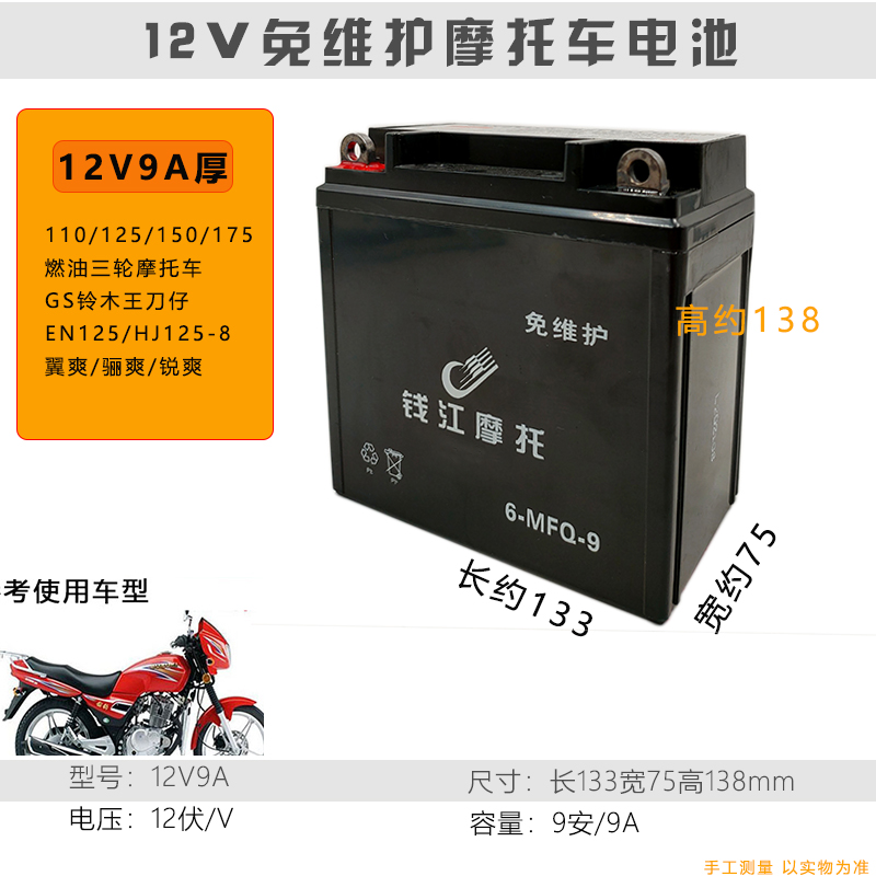 Suitable for Qianjiang locomotive 125 King Kong Jubilee 150-18A Qianjiang Long battery 12V9A maintenance-free dry battery