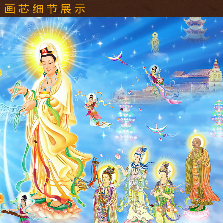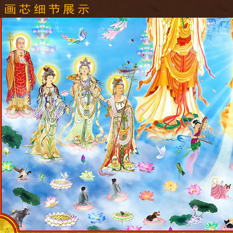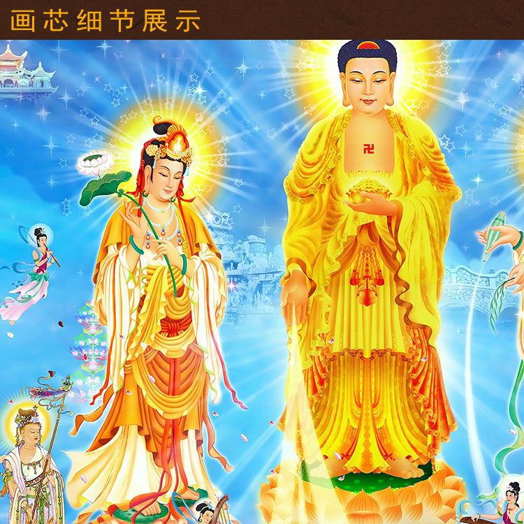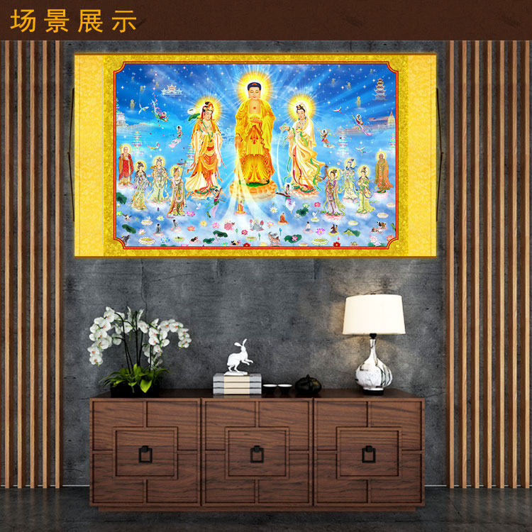 The Western Three Holy Citation Plots Cross the Hung Paintings of Amitabu Buddha Guanyin Tai-to-BodhisattBodhisattva Portrait Banner Scroll Painting