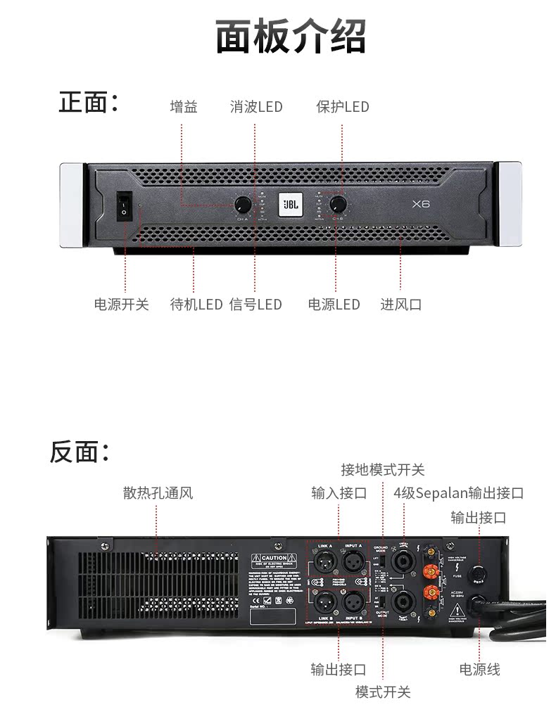 X4 power 400*2 channels can be checked for licensed products X6 power 600W*2 channels can be checked for licensed products X8 power 800W*2 channels can be checked for licensed products JBLkp6012 can be checked for a pair