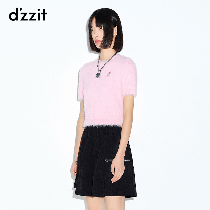 dzzit ground vegan 2022 spring special cabinet new round neckline sweatshirt short sleeve knitwear for women 3E1E3011G