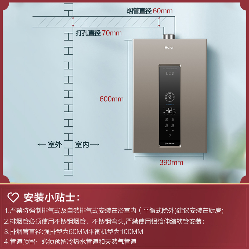 (New products three pipes) Haier gas water heater FA5 Domestic gas Zero cold water large water volume 16 litres EC5U