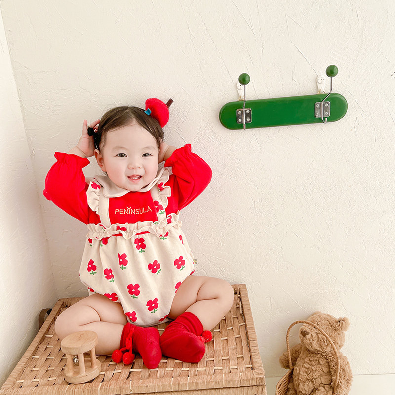 Baby clothes Spring and autumn clothes Body Clothing Newborn Baby Foreign Pie Fake two bags fart after years of climbing and climbing clothes