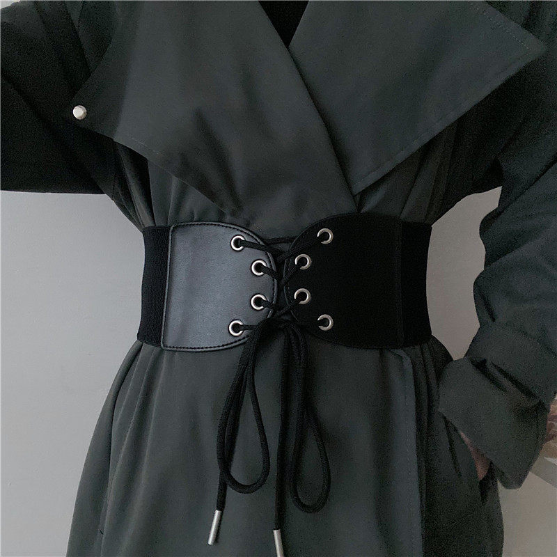 Fashion Lace Elastic Wide Belt Women European and American Retro Corset Decoration with Suit Coat Skirt Elastic Girdle Trendy