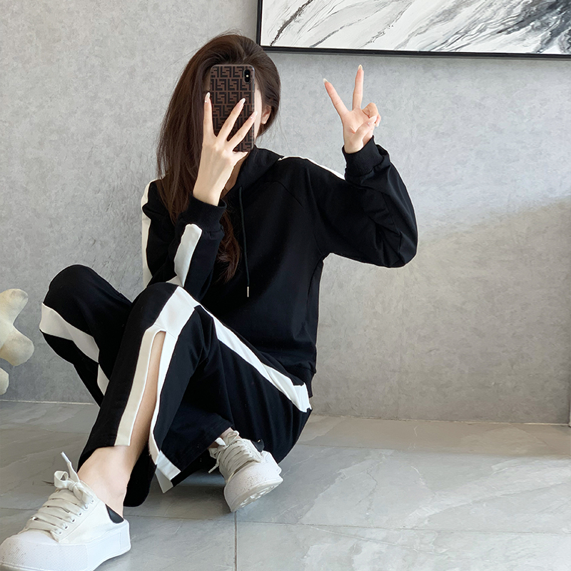 Sport suit women's spring autumn 2022 Tide Cards Loose Fashion Broadlegged Pants Foreign Wear and clothing Leisure Two-style