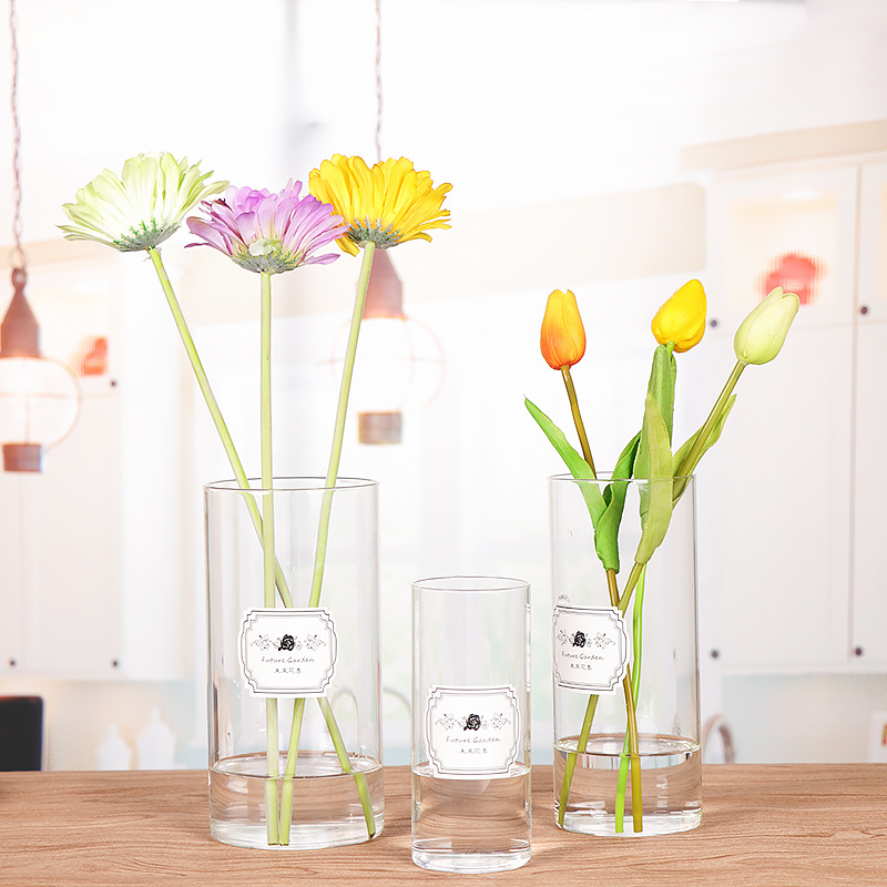 High boron silicon straight barrel vase simple transparent glass vase flower cultured green plant home decorated glass bottle