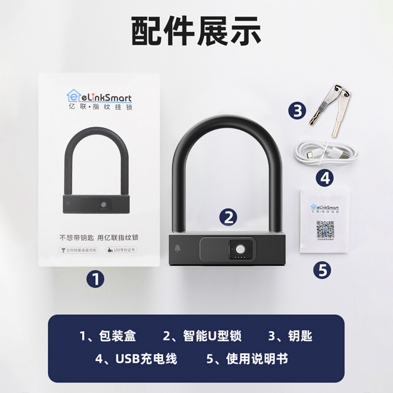 U9K Full Silicone Waterproof Fingerprint Key Standby U9BFK Full Silicone Waterproof Fingerprint Bluetooth AP Ordinary Locomotive Electric Vehicle Bicycle U-lock (Notification) Support Customization 3