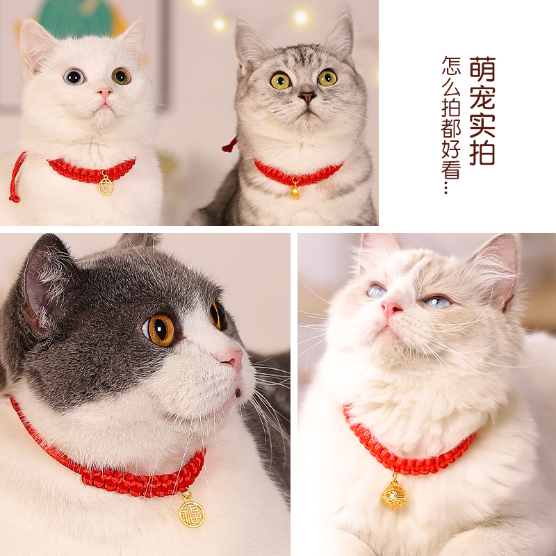 Kitty Neckline Pet Pooch Neck Ornament Handmade Red Rope Woven Kitten Necklace Young Cat Decorative Cat Cat Bell