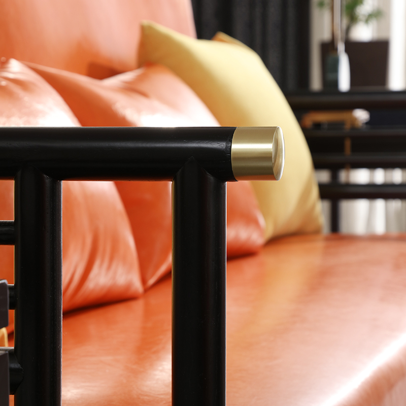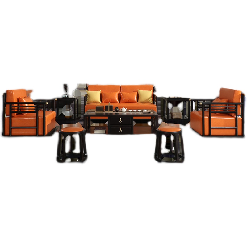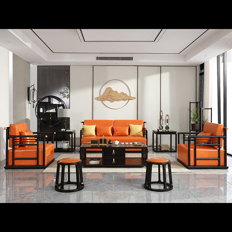 New Chinese Head Layer Cow Leather Living Room Sofa Composition Gold Silk Sandalwood Full Solid Wood Size Family minimalist light extravagant furniture