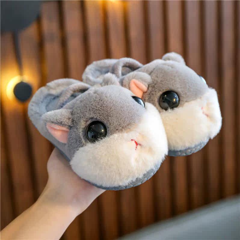 Baby slippers girls winter children cotton slippers baby 1 and a half boy shoes autumn shoes and winter shoes fur animals cute