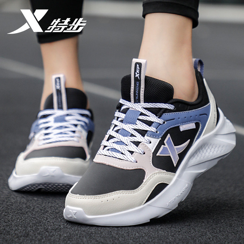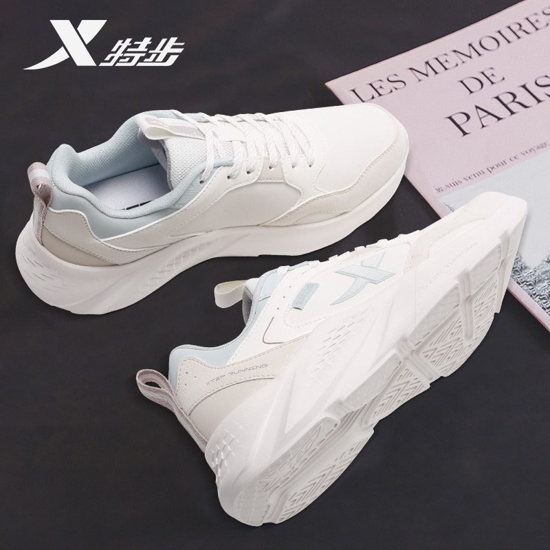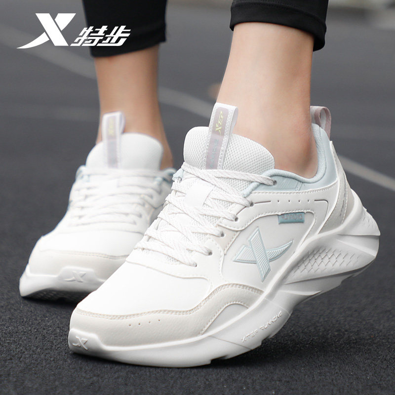 Xtep women's shoes running shoes women's sports shoes spring new leather light cushioning running shoes small white shoes casual women's shoes