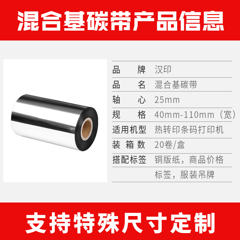 Chinese printing mixed base carbon belt 110 80 90 100mm*300m barcode printer carbon belt label paper coated paper clothing tag ribbon scratch-resistant label printer