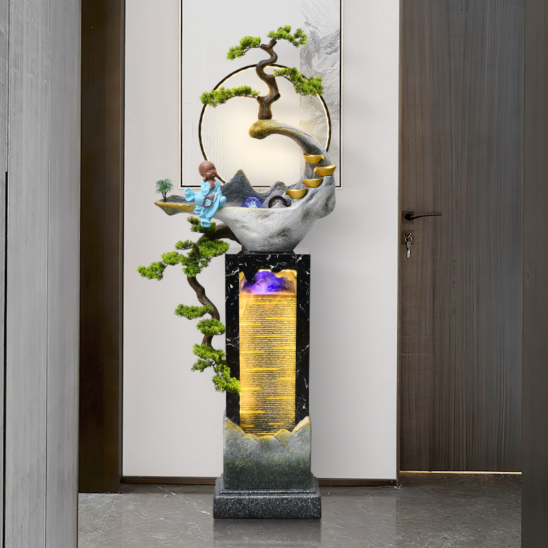 Chinese modern flowing water ornaments indoor living room porch office Villa Zhaocai stone rockery humidification water landscape