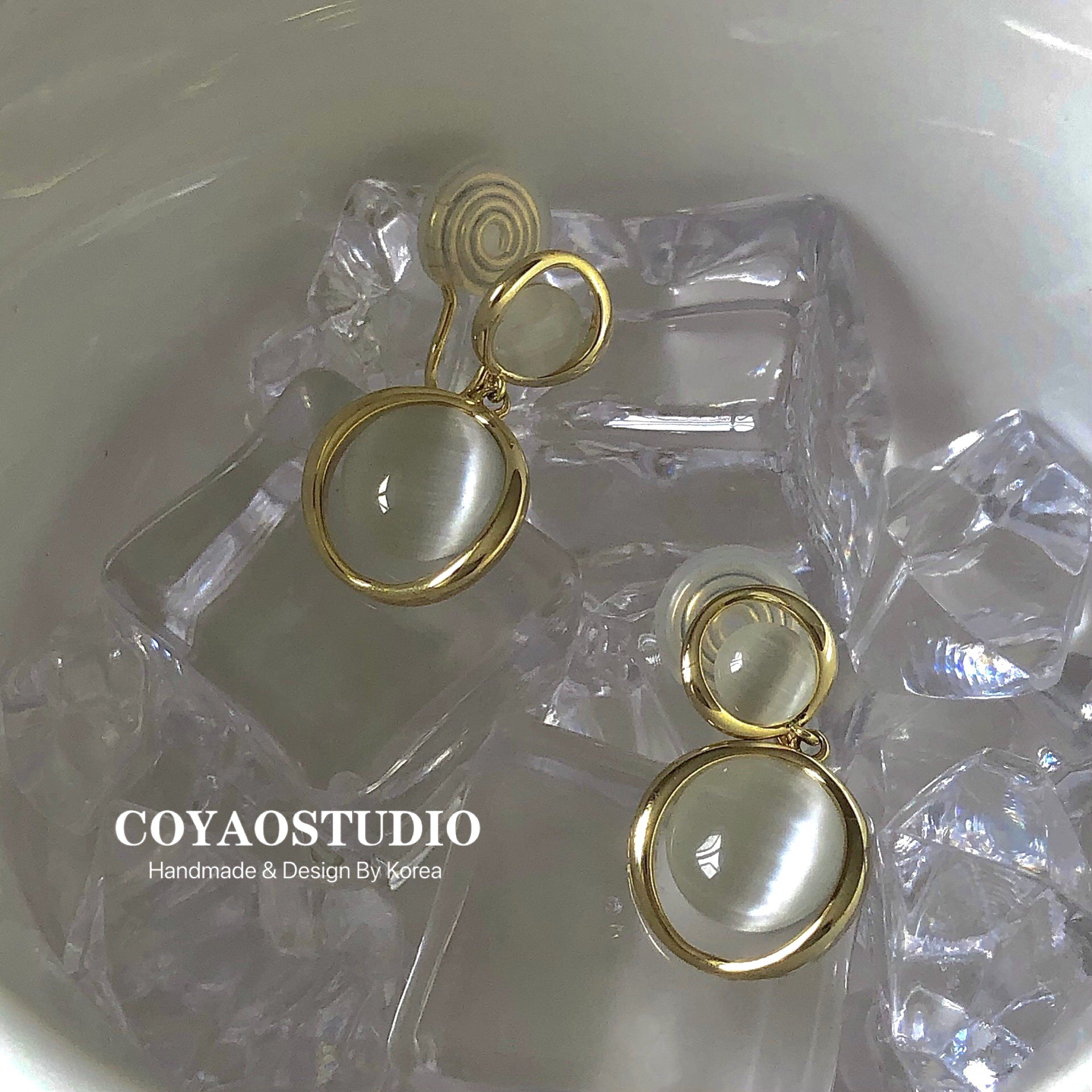 High-end mosquito coil ear clip women without ear piercing niche French retro opal design sense earrings tea light luxury