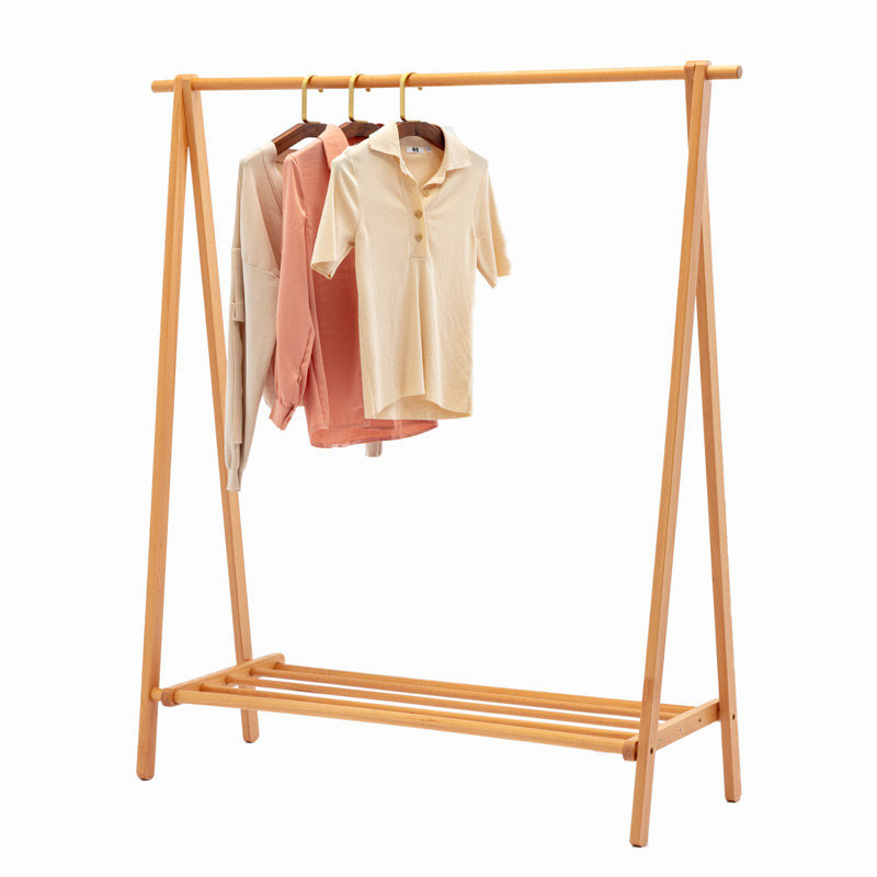 Solid wooden cap frame on the ground floor of Nordic floor hanger room simple clothes shelf bedroom small clothes rack