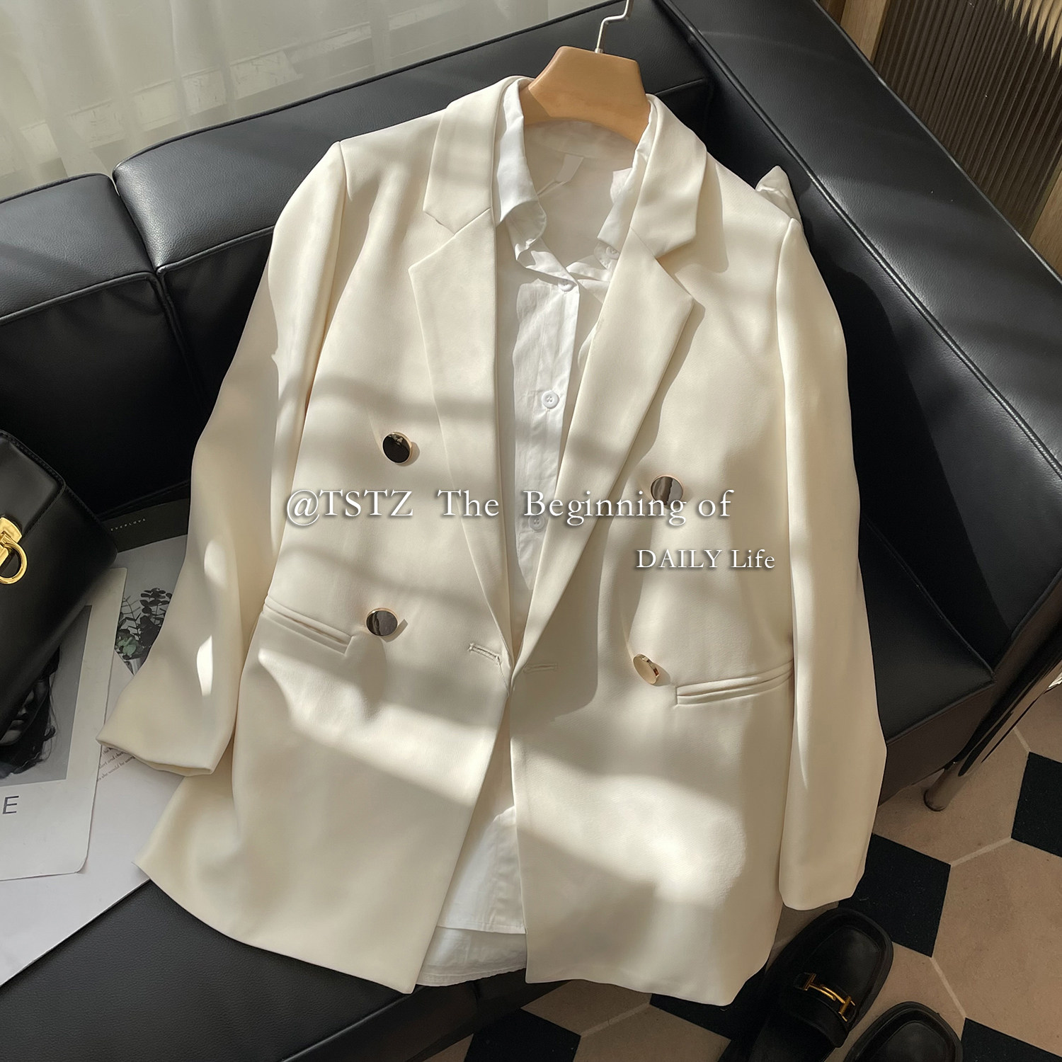 Tstz Asi self-made texture burst white suit jacket women's autumn design sense niche temperament suit