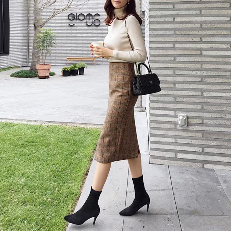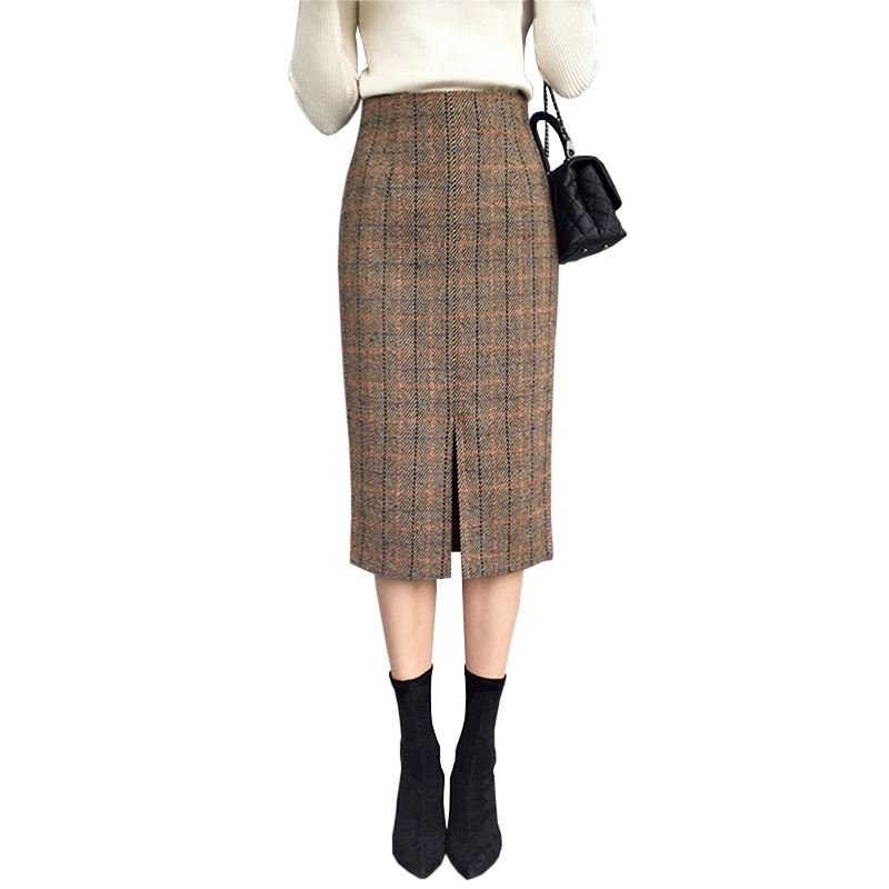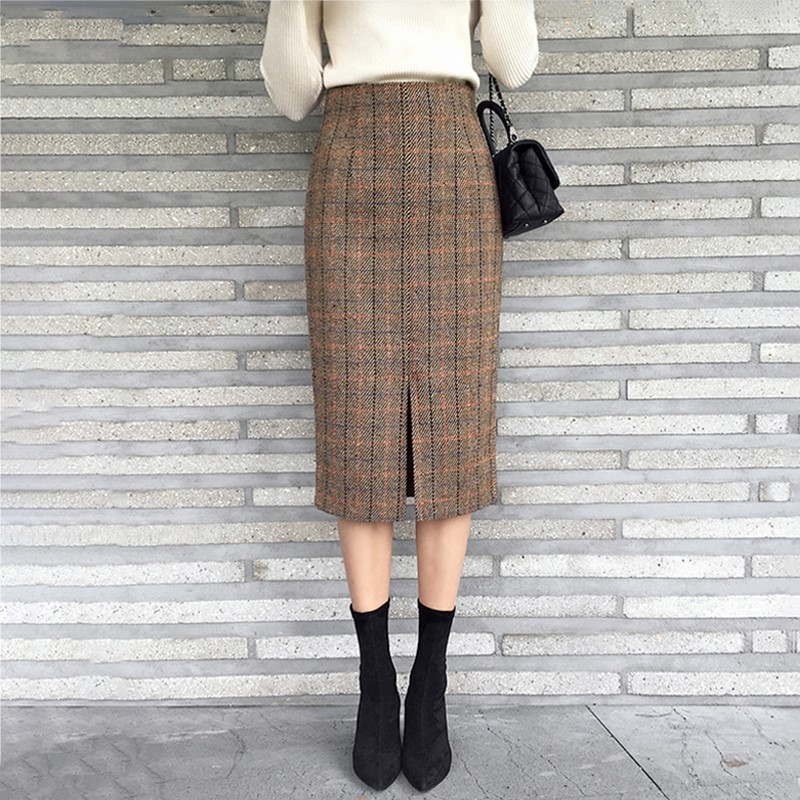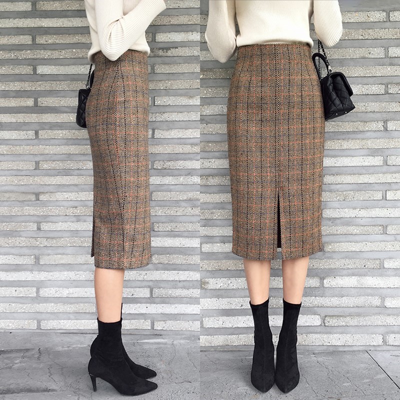 Retro package hip skirt women 2022 autumn and winter new Korean version high waist fashion plaid one step thickened woolen skirt
