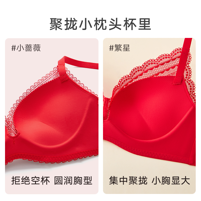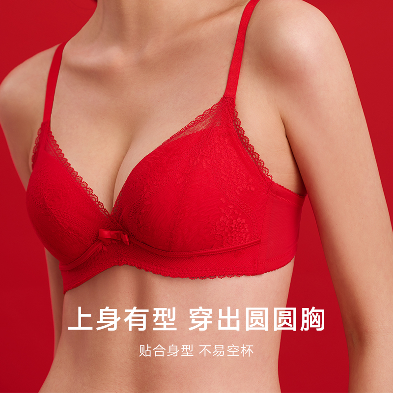 Manneffin wedding bra suit gathers soft steel ring Benny year red underwear briefs Sexy lady bra-Taobao