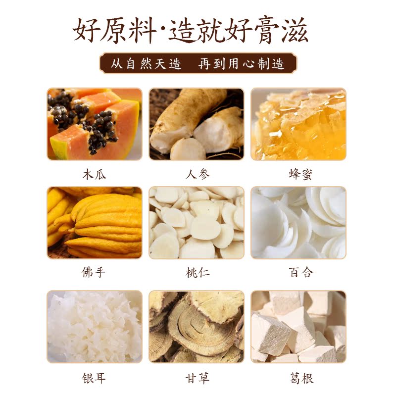 Water papaya root liquorice lily wolfberry fruit and red date rose floral walnut Ginseng ginseng (artificially grown for less than 5 years) Honey malt Burnt Essence and so on