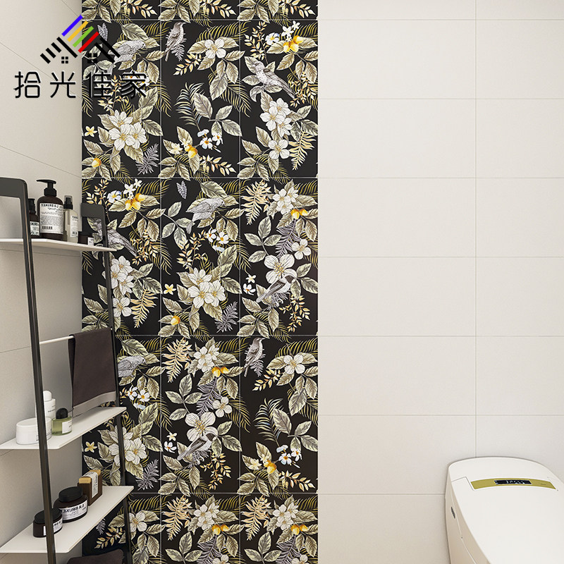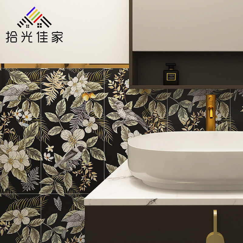 Powder room bathroom toilet background wall tile 300×600 living room porch parquet wall tile black tile tile