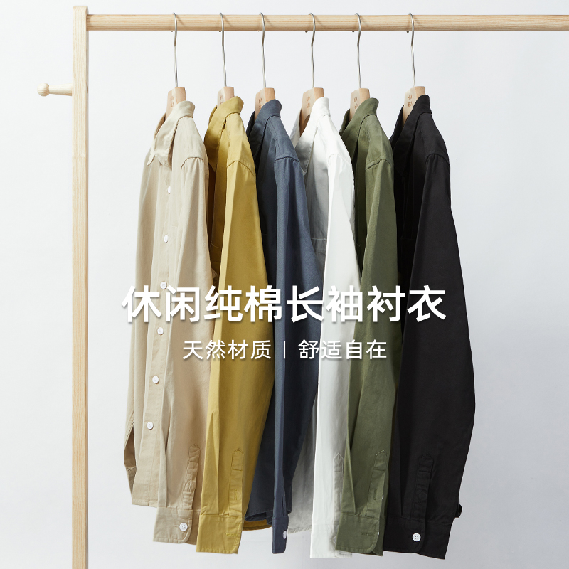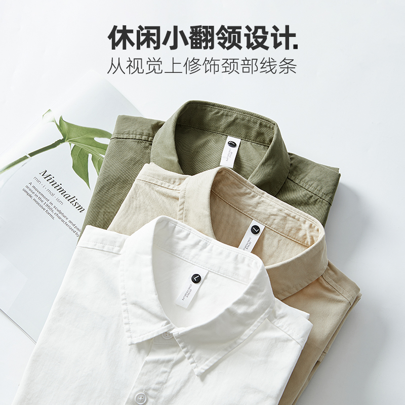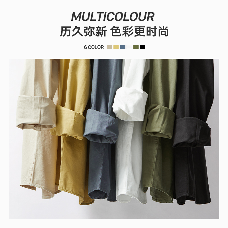 Hanska long-sleeved shirt men's spring and autumn pure cotton solid color Korean version trend loose lapel design niche jacket