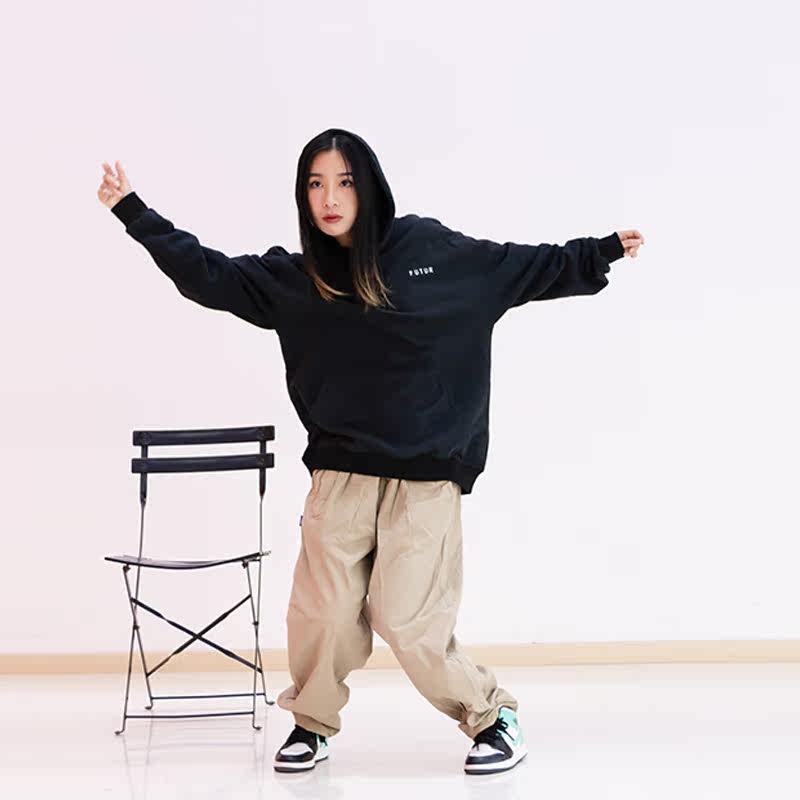 SHADOW DANCER CIKA Identical Sleeve Headliner Letters Street Hip Hop Loose 100 Hitch Dancing Long Sleeve Thick Cotton T